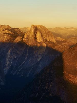 Sunset on Halfdome. Shadow of El Capitan. Yosemite, California